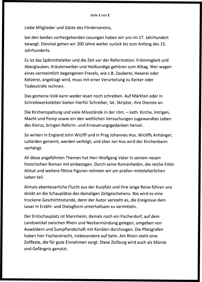 oder unterstützt hat. Er erinnerte u.a. an die Autorenlesung, an den Serenaden Abend im Juni, ebenso an das gelungene