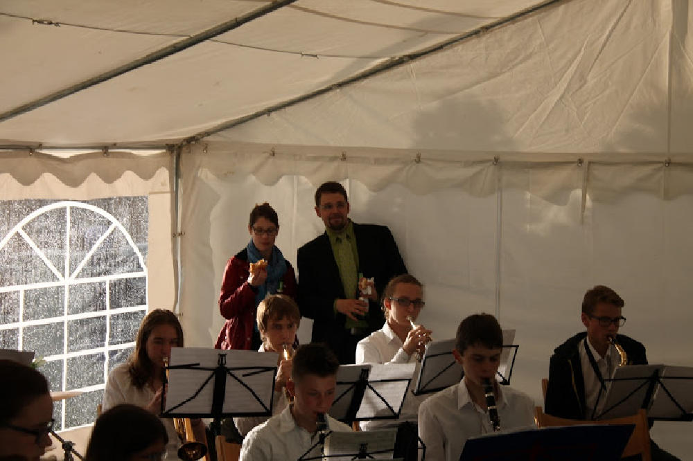 Regen wurde von den jugendlichen Musikern buchstäblich weggeblasen Der Vorsitzende des Fördervereins Bernhard Bader