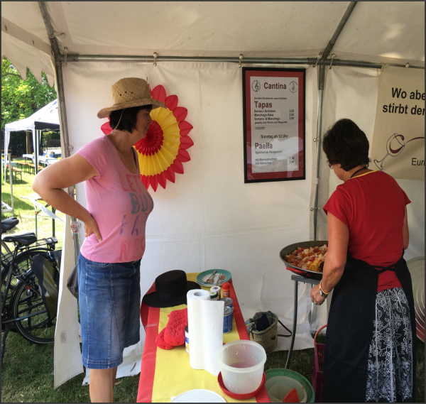 spanische Weine. Großen Anklang fand auch wieder das Angebot zweier Paella-Varianten am Sonntagmittag. Viel