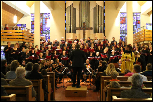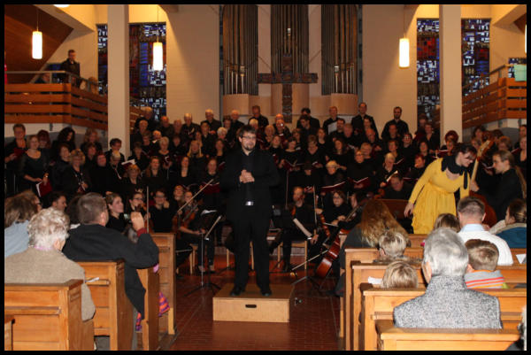 er es durch und alle folgen ihm. Die voll besetzte Lutherkirche bebte unter den Klängen des Orchesters, der zwei Chöre
