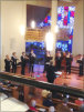 von Heinrich Schütz mit dem Bläserensemble; die Musik schwebte echomäßig aus drei Richtungen durch die Kirche. Unter