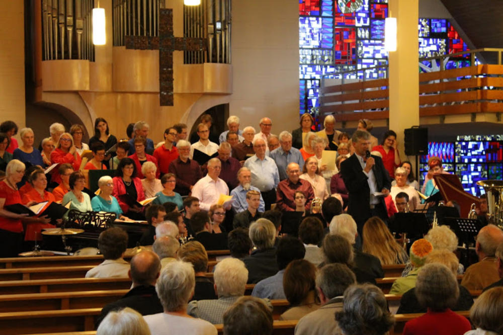 und begeistertes Publikum. Evangelischer Singkreis und Katholischer Kirchenchor in Begleitung mit Orgel und dem