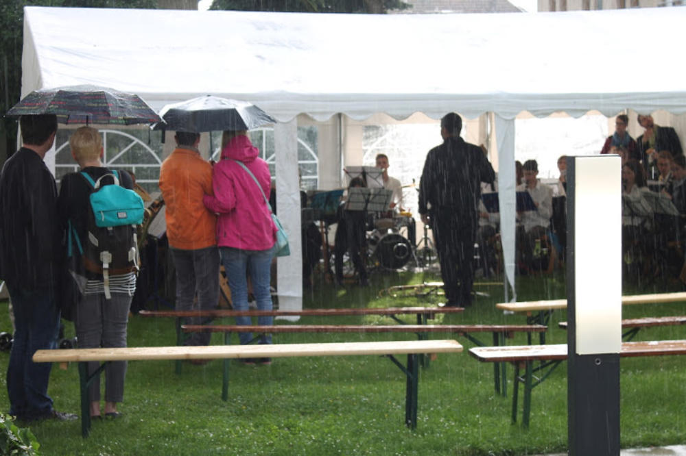 Regen wurde von den jugendlichen Musikern buchstäblich weggeblasen Der Vorsitzende des Fördervereins Bernhard Bader