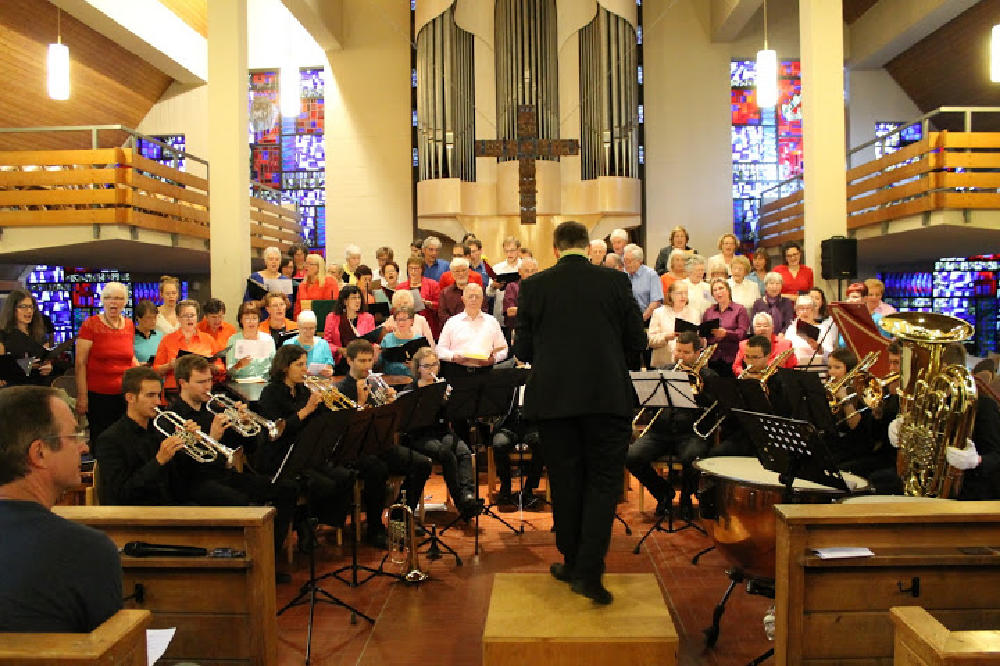 und begeistertes Publikum. Evangelischer Singkreis und Katholischer Kirchenchor in Begleitung mit Orgel und dem