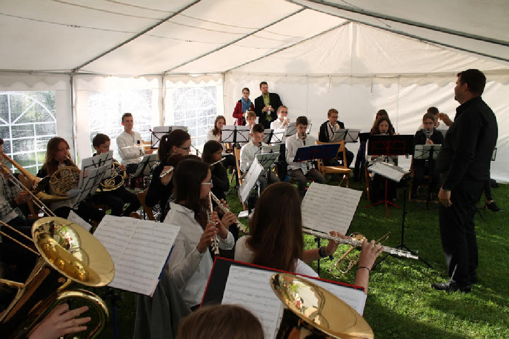 Regen wurde von den jugendlichen Musikern buchstäblich weggeblasen Der Vorsitzende des Fördervereins Bernhard Bader