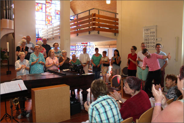 studierte er ganz professionell Lieder mit den Zuhörern ein, die wiederum - vom Singkreis unterstützt - rege mitsangen.